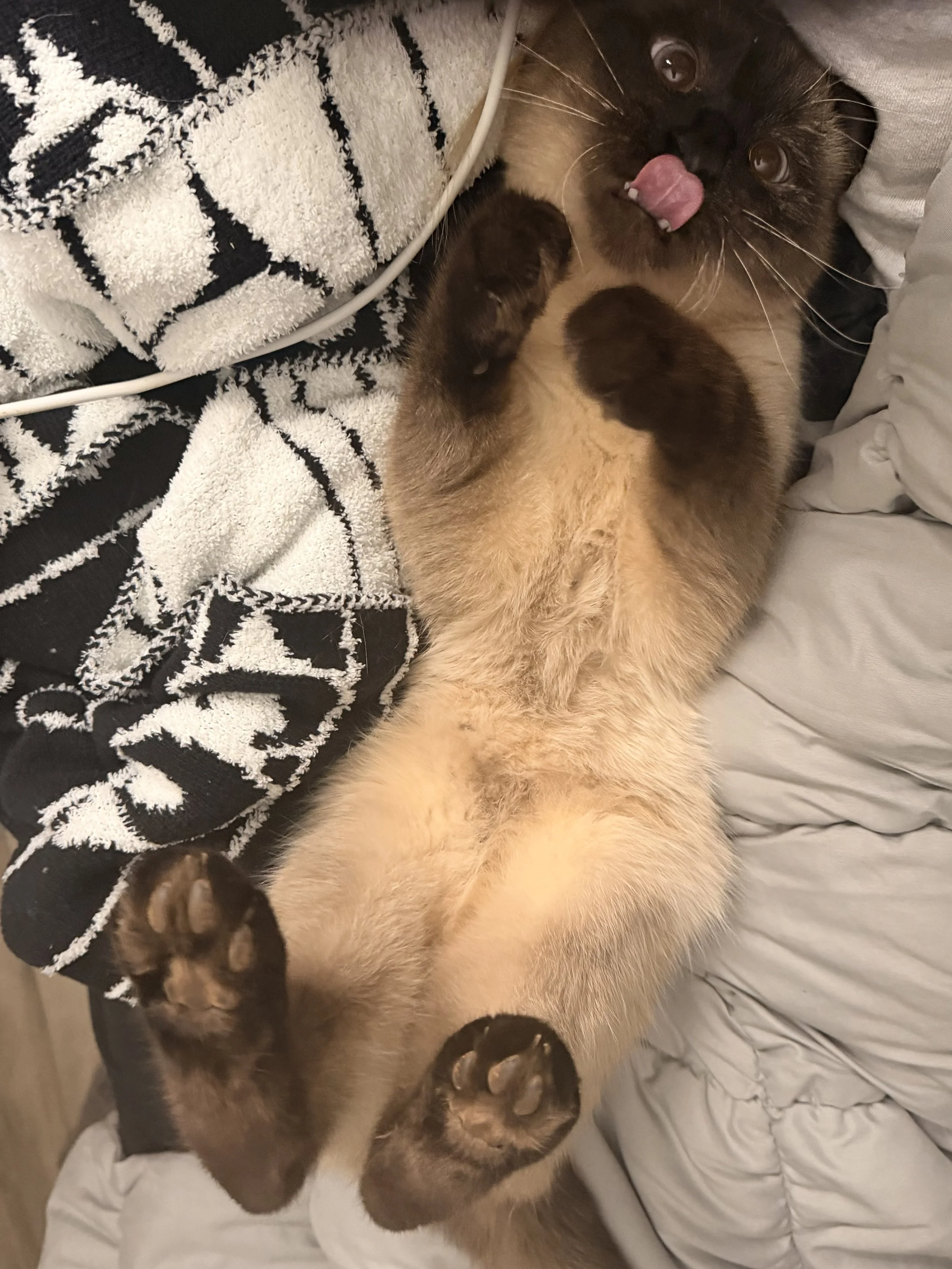 Rescued and Adopted Spirit is the life of the party. He has the personality of a siamese but the love of a tabby. He is a great friend and wonderful playmate! Great with cats, dogs, and kids.